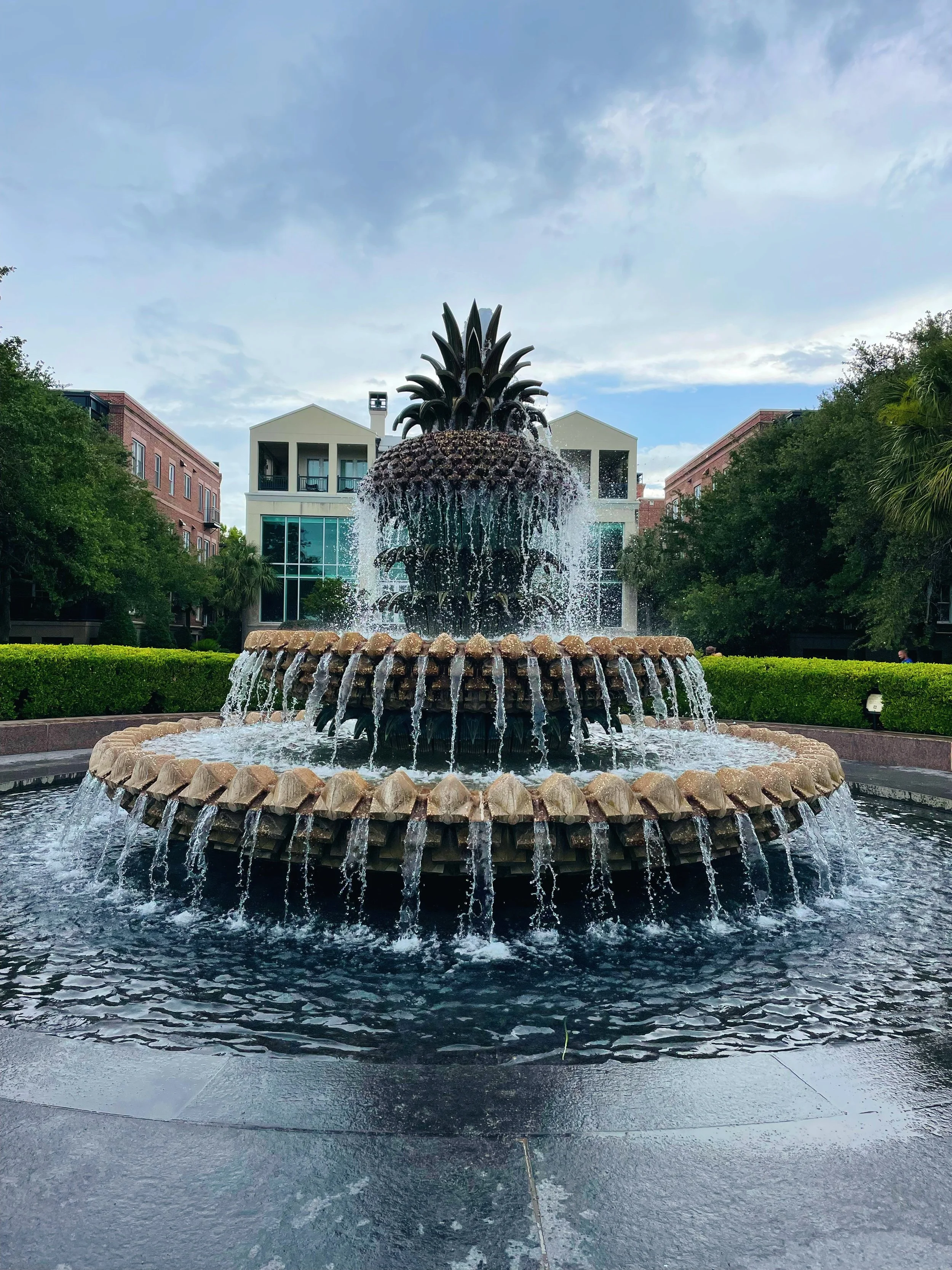 Pose in front of the Pineapple Fountain in Waterfront Park off of Concord Street.